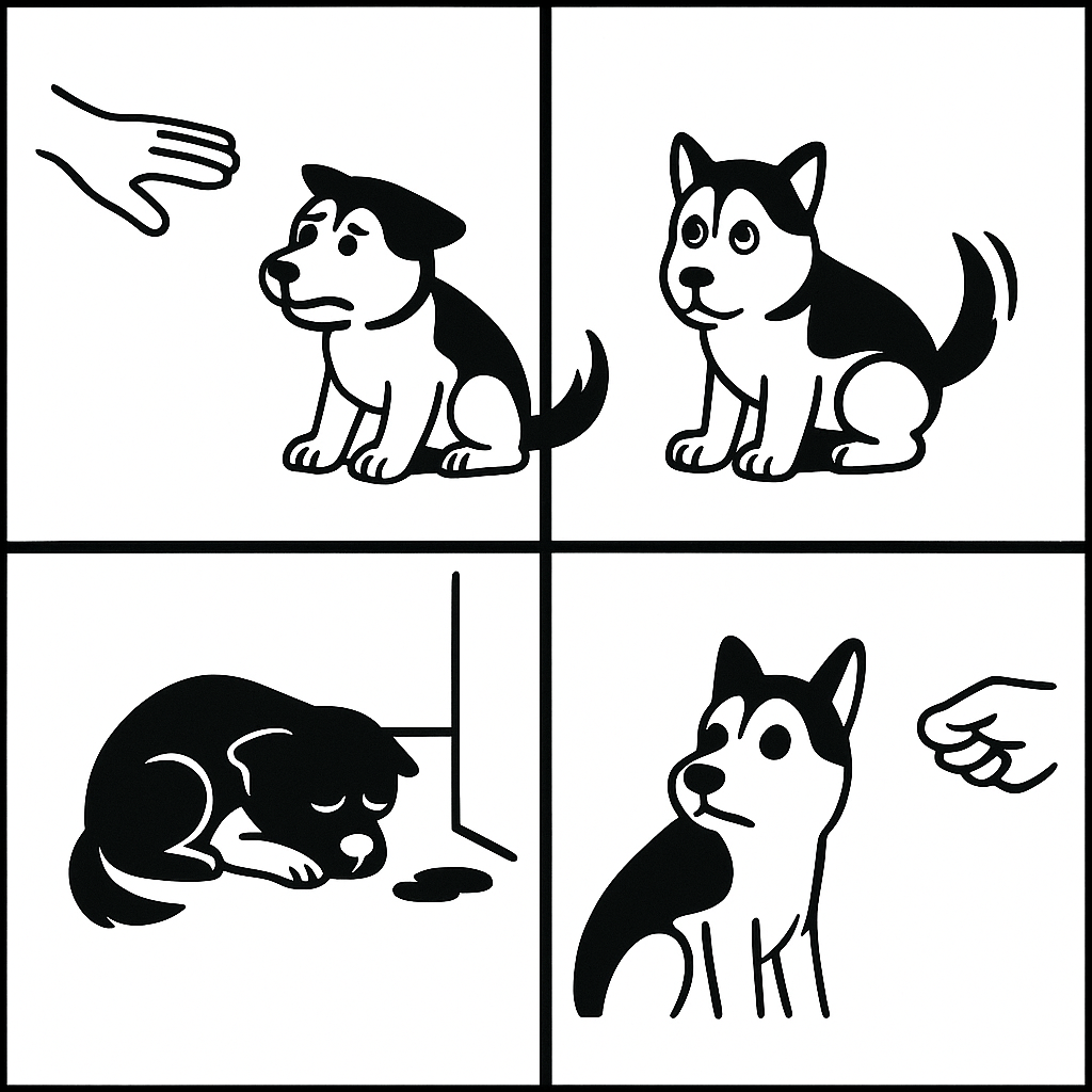 도망쳐도 소용없다는 걸 배운 강아지는, 그저 맞습니다.